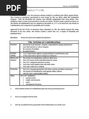 Under the articles of confederation, why might one state tax goods manufactured in another state? Articles of confederation review key. Read the text above, then answer the questions below. Articles of confederation 1777 worksheet answers. The term articles means parts or provisions of a document.
